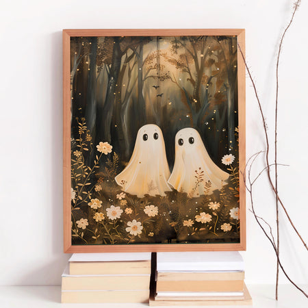 Cute ghost in the forest halloween print nursery wall art spooky ghost painting digital download 1 print $8.00