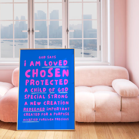 God Says I Am Loved Christian Scripture Gift pale blue blush pink Poster Pink Wall Art Printable Maximalist Christian Dorm Digital Download $9.50