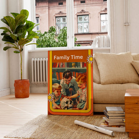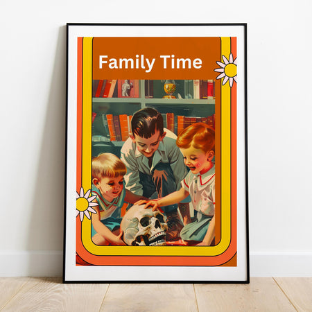 Family Time Funny Vintage Halloween Skull Retro Orange Wall Art Print unique fun halloween sarcastic original unique digital art download $8.00