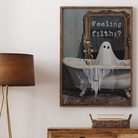 feeling Filthy vintage halloween bathroom laundry art cute creepy ghost in bath funny halloween print fun spooky wall art digital download $8.00