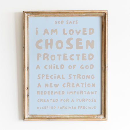 God Says I Am Loved Christian Scripture Gift Baby Blue Poster Nursery Wall Art Printable Maximalist Christian Dorm Digital Download $9.50