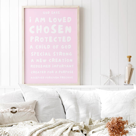 God Says I Am Loved Christian Scripture Gift pale blush pink Poster Pink Nursery Wall Art Printable Jesus Christian Dorm Digital Download $9.50