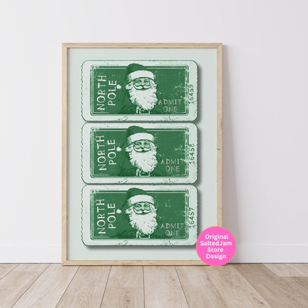 North Pole Ticket Print Santa Christmas Decor Retro Trendy Christmas Prints Christmas Wall Art Xmas Holiday Decor Funny Cute Digital print $10.00