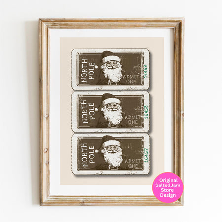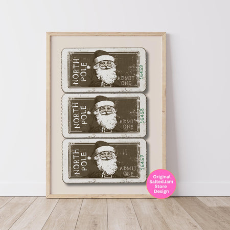Vintage Christmas Print North Pole Ticket Print Santa Retro Christmas Santa Christmas Prints Funny Xmas Wall Art Holiday Decor Digital Print $9.00