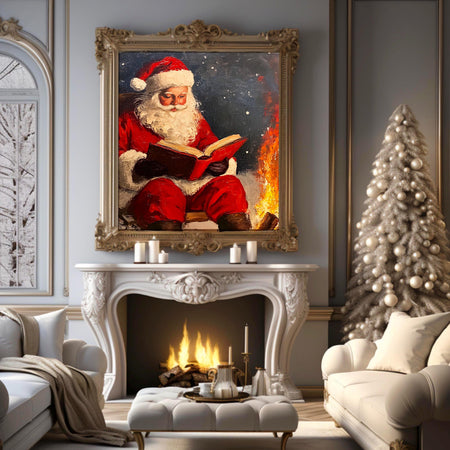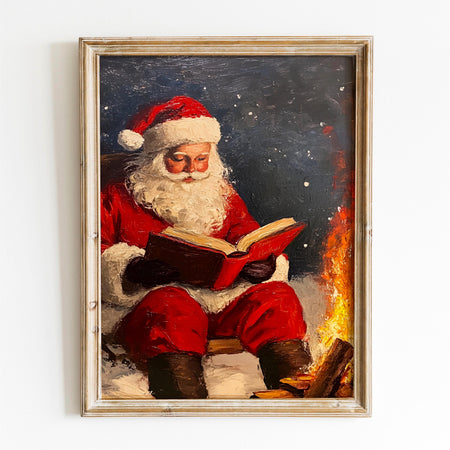Traditional Santa Christmas Prints Vintage Wall Art Retro Xmas Printable Cosy Fireplace Printable Cottagecore Xmas Decor Santa Digital Print $7.50