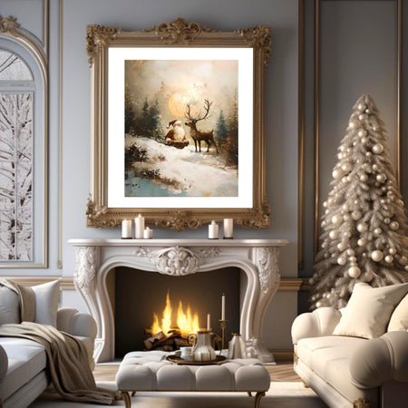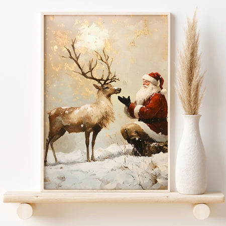 Santa Vintage Painting Reindeer Traditional Christmas Art Prints Beige Wall Art Retro Xmas Cosy Christmas Printable Reindeer Digital Print $7.50