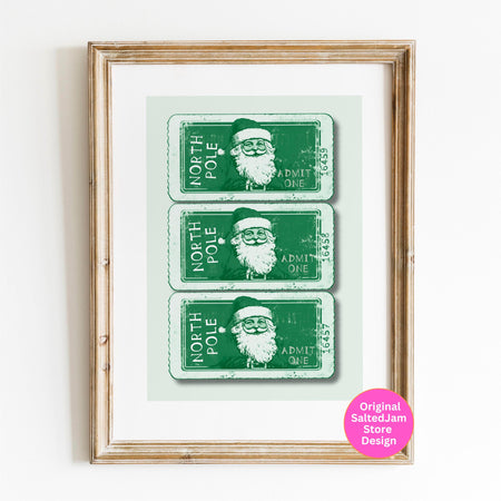 Green Vintage Christmas Print North Pole Ticket Print Santa Retro Christmas Christmas Prints Funny Xmas Wallart Holiday Decor Cute Printable $9.00