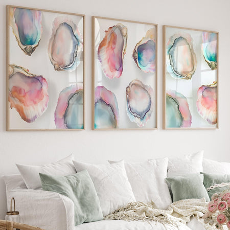 Oyster Painting Colorful Pastel Abstract Coastal Beach House Wall Art Seashells Print Summer Oyster Shell Kitchen Print Digital Art Set of 3 $11.00