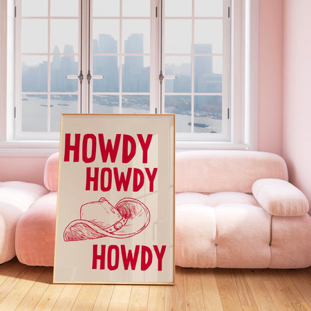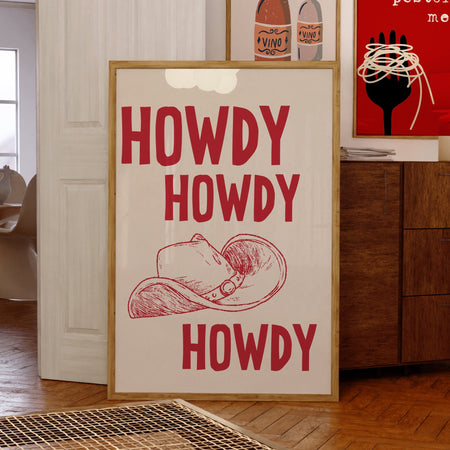 Howdy Western Art Prints Red Vintage Cowboy Art Wild West Art Retro Cowgirl Prints Western Gallery Wall Set Black Wall Art Digital Download $13.50