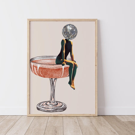Disco ball head poster, funky disco 70s print, retro wall art, digital artwork, luxury mirrorball printable, girly dorm room artt trendy $9.50