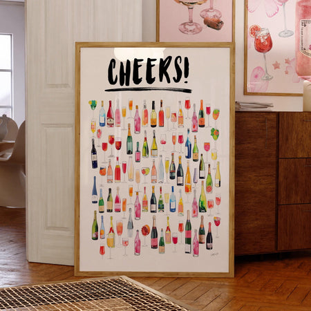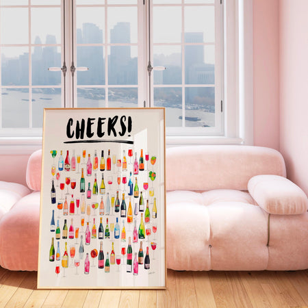 Cheers bar cart art retro trendy watercolor champagne cocktail poster aesthetic girly cute preppy pink prints gift for wine lover 1 print $7.50