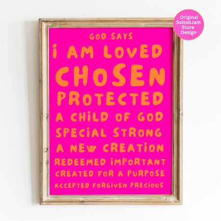 God Says I Am Loved Christian Scripture Gift Pink Orange Poster Pink Wall Art Printable Maximalist Christian Dorm Digital Download $9.50