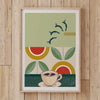 Morning Swim. This is a beautiful fun retro style coffee print The perfect gift for a friend who loves their morning coffee. Great for a birthday or christmas gift or will look fabulous in the kitchen or dining area.
