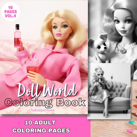 Colouring book pages grayscale, doll world printable adult grayscale, set of 10 printable coloring in pages instant digital download pdf $15.00