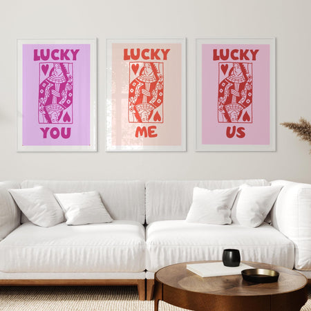 Retro trendy aesthetic wall art, wall print, digital download print, wall decor, large printable art, queen of hearts, lucky you, set of 3 $15.00