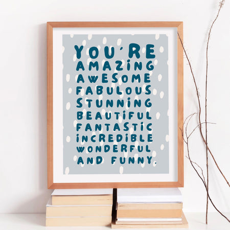 You are amazing blue poster, funky 70s positivity wall art, digital artwork,printable, girly dorm room art trendy retro digital download $10.00