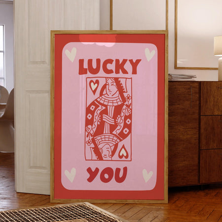 Trendy retro wall art, vintage aesthetic print, pink lucky you poster, lucky you, trendy wall art, funny art, digital, preppy wall decor $7.50