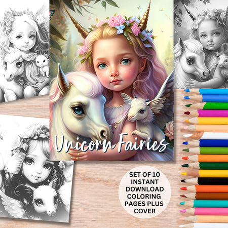 Delicate fantasy fairies coloring page printable coloring page for adult coloring book digital download grayscale kids colouring unicorn art $10.00