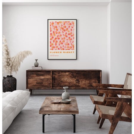 Pink flower market digital download print, 70s style poster, 60s flower print, pink orange decor, dork room wall art, printable art, dork $10.00