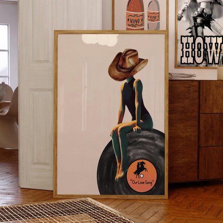 Cowgirl love song wall art, trendy wall art retro preppy vintage wall decor, funny dorm room decor, cowgirl boots funny printable poster $10.00