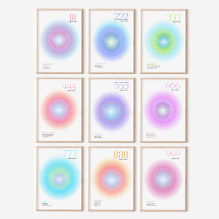 Angel number set of 9, trendy wall art, spiritual poster, angel number print, room decor aesthetic minimalist, digital download, aura poster $15.00