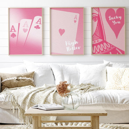 Trendy retro wall art set of 5,retro trendy aesthetic print,lucky you poster,pink print,trendy wall art,funny art, minimalist, digital art $15.00