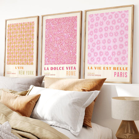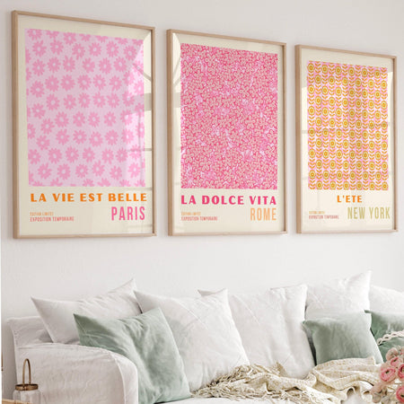 Dorm room decor, orange flower market digital download print, 70s style prints, pink orange decor, dork room wall art, printable art set $15.00