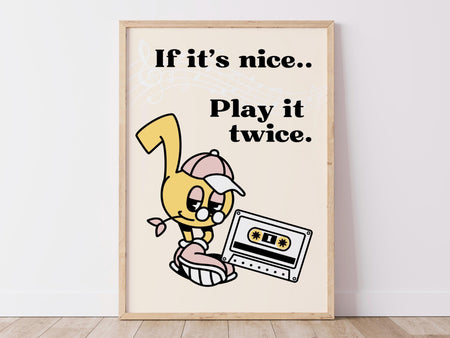 Retro music wall art, retro quote wall print, groovy decor, record player poster, trendy poster, printable decor, if it's nice play it twice $10.00