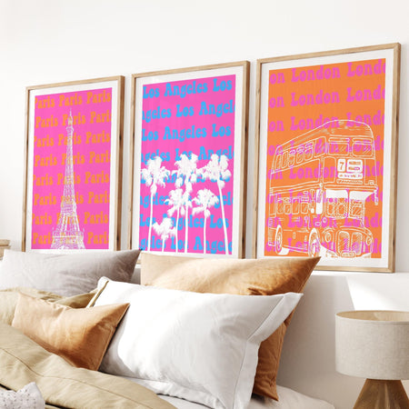 Travel print set of 6, gallery wall set, printable wall art, colorful travel poster, pink orange wall art, orange pink wall decor, printable $10.00