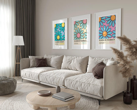 Printable set of 3 prints, flower market prints, 70's wall art, trendy, retro print, set of three wall art, gallery wall bundle, $10.00