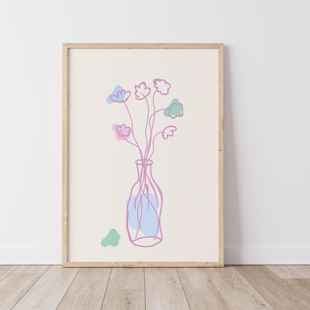 Pink blue bouquet of flowers floral abstract digital download girls bedroom printable dorm decor gift idea cute minimalist wall art 1 print $10.00