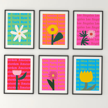 Set of 6 travel famous places prints | ibiza london los angeles paris new york gallery | preppy travel poster | colorful home decor art $10.00