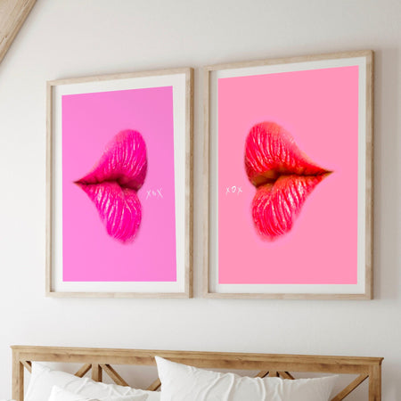 Gallery wall art set of 3 prints, pink prints, pink lips wall decor, maximalist wall decor, pink orange wall art, digital download, $15.00