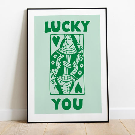 Green retro trendy aesthetic wall art, trendy retro wall print | preppy wall art | orange and pink poster | retro dorm decor, lucky you $10.00