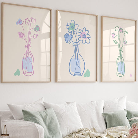 Pink orange digital download, 70s style poster, 60s flower print, orange pink decor, dorm room wall art, printable set of 3, pink prints, $15.00