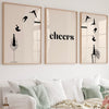 Cheers print | trendy retro wall art set of 3 | bar cart drinks art | bar cart accessories | drinks printable wall art | digital download