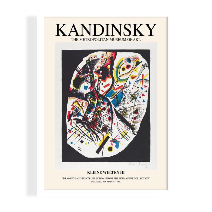Kleine Welten III (Small Worlds III) by Wassily Kandinsky. This vintage 1922 piece by Russian painter Wassily Kandinsky, is a part of a four-series print portfolio that was published shortly after Kandinsky began teaching at the Bauhaus. Each piece is a reflection of Kandinsky's view of the world as a self-contained cosmic entity consisting of innumerable independent, hermetic units. Kleine Welten III is an enhanced version of the original print which is currently stored within The Metropolitan Museum of Art Collection