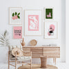 Pink gallery wall set of 5, trendy wall art, matisse pink green art, fashion print, pink preppy wall decor art print set,